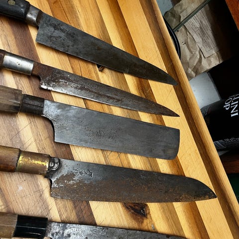 Europeiske håndtak, intakte egger, utslitte håndtak. Selges slik de er.