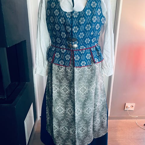 Bunaden er str S-M. Muligheter for å sy inn og ut. Brukt av dame på 65kg og 165cm høy.