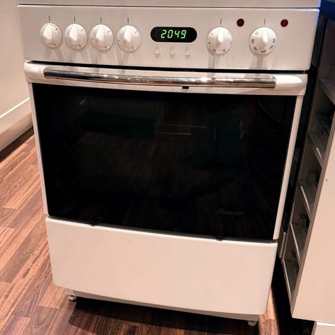 Bosch keramisk komfyr med integrert stekeovn. Komfyren har keramisk topp med flere kokesoner og stekeovn med flere riller for plassering av stekebrett og rister. Front i stål og glass med manuelle brytere for betjening av både koketopp og ovn. Egner seg for vanlig matlaging og baking på kjøkkenet, tegnene på bryteren har falmet litt vekk men alt fungerer ellers! Selges pga kjøp av ny