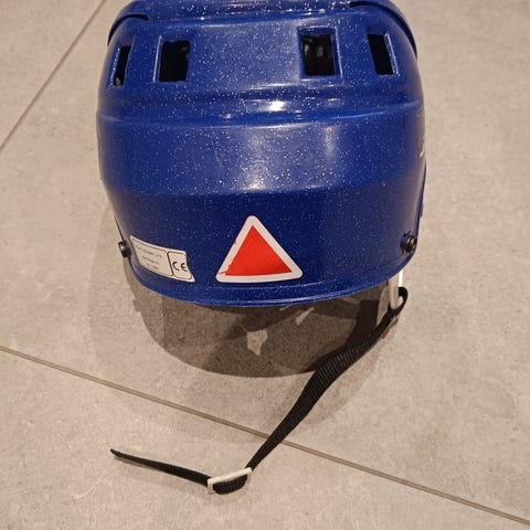 Bula skøytehjelm i blå farge med mønster. Hjelmen har justerbar stropp under haken og polstret innside for økt komfort. Egner seg til bruk i skøytebane og annen vintersport der hodebeskyttelse er nødvendig.