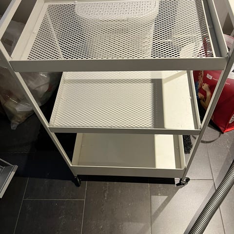 Tralle med 3 hyller på hjul hvit metall