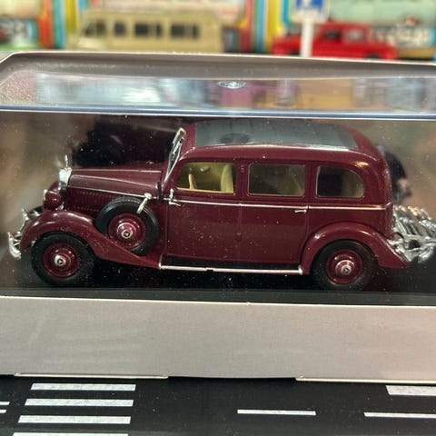 Atlas Mercedes-Benz offisiell skalamodell bil i grå farge. Modellen leveres i original displayboks med klar plast som beskytter bilen. Detaljert gjengivelse av klassisk Mercedes-Benz personbil med kromdetaljer, felger og nummerskilt. Egnet som samleobjekt eller utstillingsmodell for vitrineskap eller hylle. Skalamodellen er en del av «Mercedes-Benz Official scale model collection» fra Atlas Collections.