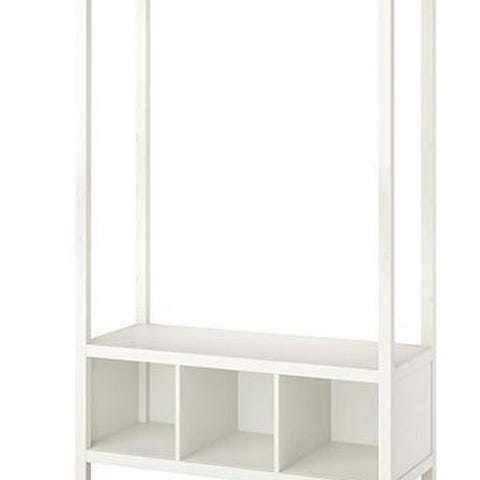 IKEA garderobeskap med i frostet glass og rammer i trelook. Skapet har flere seksjoner med ulike oppbevaringsløsninger, blant annet hyller, klesstang og uttrekkbar hylle/kurvløsning. Egner seg til oppbevaring av klær, sko og tilbehør i soverom, gang eller garderoberom. Klar for henting. Hentes fra 4 de etj med heis. Kan parkere bilen rett foran blokka.