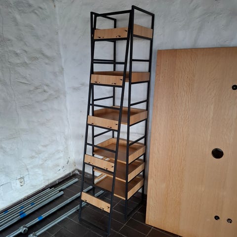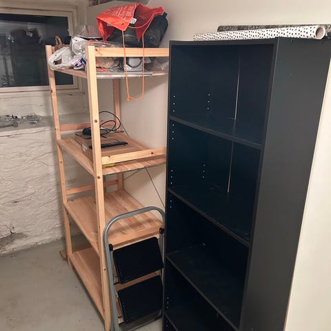Jysk bokhylle med åpne hyller og nederste skuff i grå/hvit utførelse. Hyllen har flere romdelte hyller som egner seg til oppbevaring av bøker, permer eller dekor. Nederst er det en rominndelt skuff som gir ekstra lagringsplass til mindre gjenstander. Passer i stue, kontor, soverom eller gang der det er behov for kombinert åpen og lukket oppbevaring.