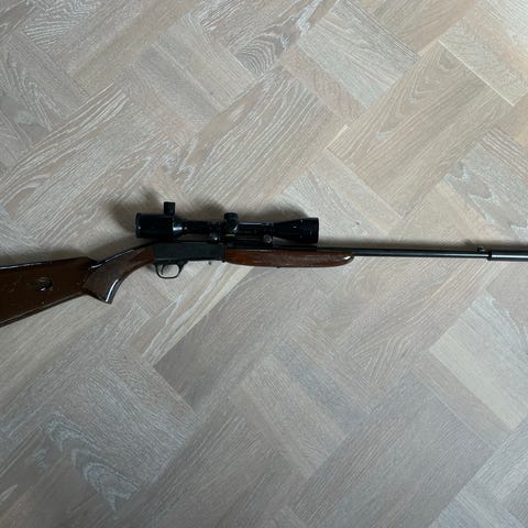 Våpenet har trestokk med lakkert overflate. Solid våpen med bra kikkertsikte. Kjøpte denne ny i 1993. Har stått lagret i våpenskap siden 2008.