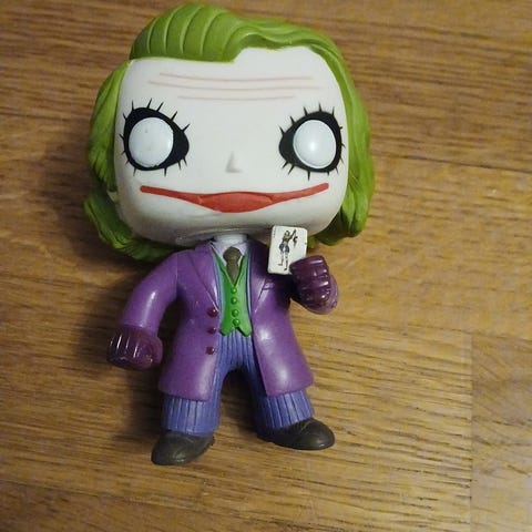 Zombie-inspirert vinylfigur med grønt hår og lys blågrønn hud. Figuren har lilla jakke, sort sløyfe og sorte sko, og holder en liten gjenstand i hånden. Passer som samlefigur, pynt eller leke for eldre barn og voksne samlere. Størrelse er liten/bordmodell (omtrent håndstor).