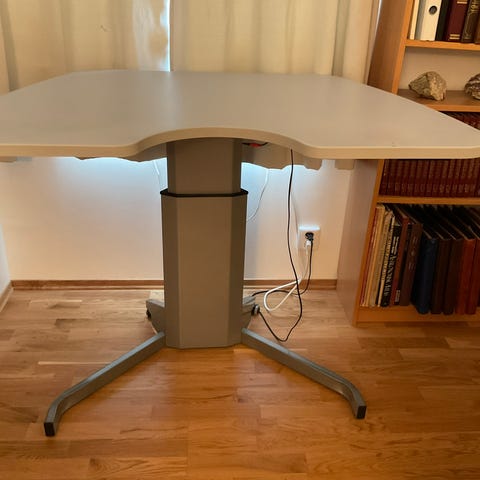 Rammen har elektrisk høydejustering fra ca. 71 til 119 cm og passer til bordplater på 100 og 160 cm bredde. Den leveres med LCD‑kontrollpanel, smart minnefunksjon for lagring av høydeposisjoner og justerbare føtter for tilpasning til underlaget.