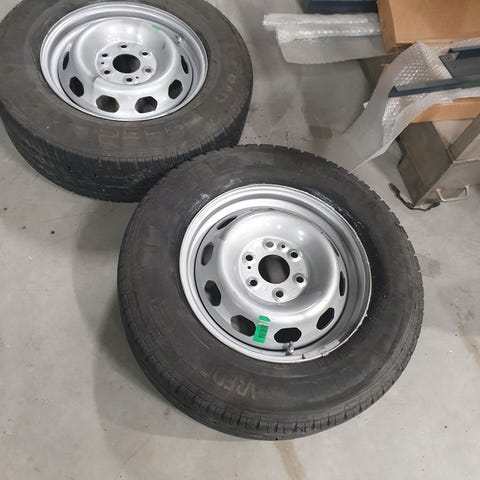 Helt nye komplette hjul med piggdekk på stålfelger 5/108 bolter Et68