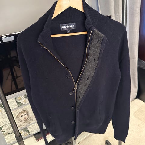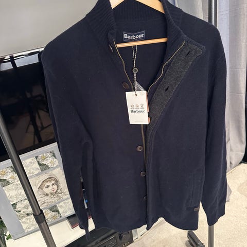 Selger unna en ettertraktet og pent brukt Barbour Cardigan i en pen gråfarge