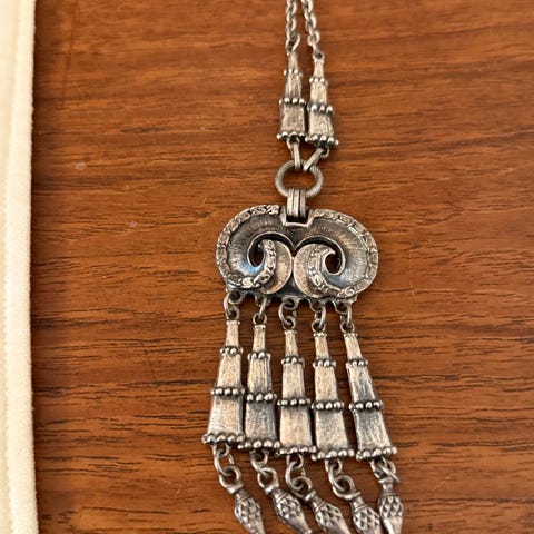 Sylvsmidja Rogaland trekkkjede med spyd, hvitt (ikke oksidert). 110cm. Aldri brukt. (Ny pris 2600)