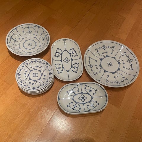 ORIGINAL BLAU SAKS, STRÅMØNSTER, PRODUSERT AV JAGER EISENBERG PORSELENS-FABRIKK, GERMANY.