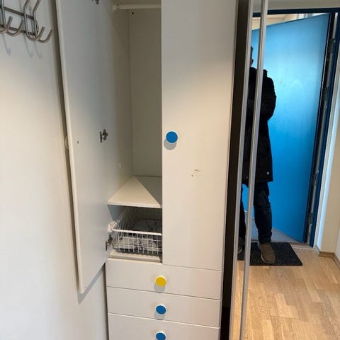 IKEA RIGGA klesstativ på hjul. Mangler en liten del (se siste bilde). Har noen skraper, men fungerer greit.