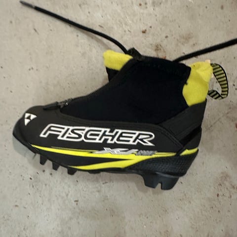 Pent brukt Fischer langrennsstøvel i størrelse 25. Støvelen er laget med syntetisk overdel og syntetisk såle, med tekstilfôr på innsiden. Fargekombinasjon svart og gul. Modellen har glidelås foran og snøring for enkel tilpasning.