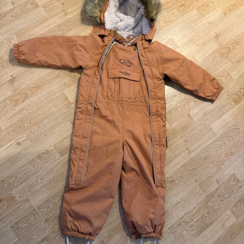 God vinterdress til de minste. Brukt fra 2-3 år. Synlig bruksslitasje i fargen på knær/rumpe og litt inni hette (se bilde), men ingen hull eller øvrig slitasje. Mangler en fotstropp.