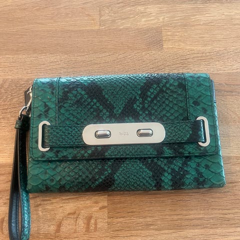 Ganni veske i stoff for dame. Vesken har leopardmønster og korte bærehåndtak i kontrastfarge. Den lukkes med glidelås på toppen og har utvendige lommer med spenner foran. Innvendig hovedrom er romslig og egnet til daglig bruk, som håndveske eller mindre bag. Materiale i mykt stoff med trykket mønster.