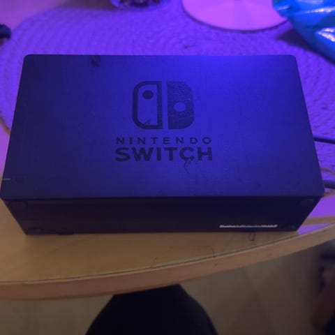 Nintendo Switch dokkingstasjon med original strømadapter. Dokk for tilkobling av Nintendo Switch-konsoll til TV via HDMI (HDMI-kabel ikke inkludert dersom ikke annet er oppgitt av selger). Strømadapteren kobles til dokken og gir strøm til både dokk og konsoll. Farge: svart. Passer til standard Nintendo Switch-modell som bruker denne typen dokk og lader.