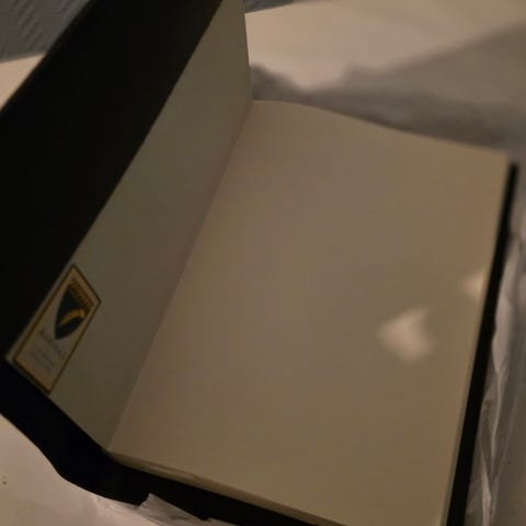 Notatbok med hundemotiv, hvor designet er svibrent inn i bokomslaget. Håndlaget og unik.