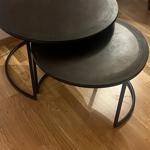 To fine rustikk/ metall runde sofabord i svart farge selges. Lite brukt da de har stått på "hytta."