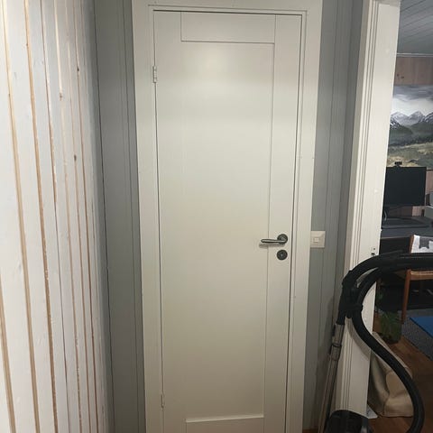 Scanflex innerdør med karm i hvit utførelse. Døren leveres med ferdig montert karm og dørhåndtak. Egnet som standard innvendig dør i bolig eller tilsvarende. Ny pris 4065kr hos Monter.