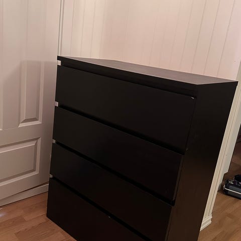 Sort Malmkommode fra Ikea med 4 skuffer.