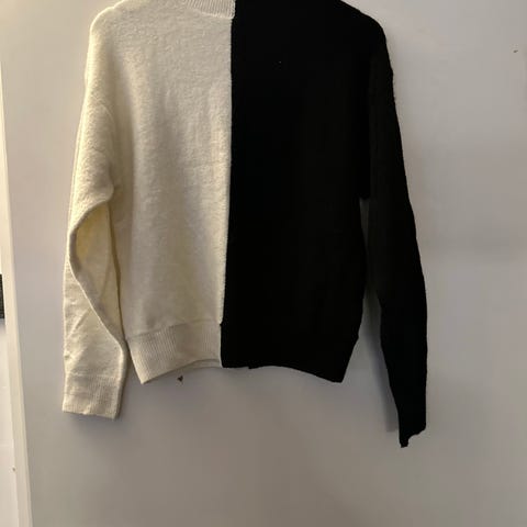 Lindex genser for dame i størrelse XS. Genseren er grønn og turkis med brede horisontale striper. Den har høy hals og lange ermer med ribbestrikkede kanter. Materialet er polyester. Passer til hverdagsbruk og kan kombineres med både bukser og skjørt. Vask- og vedlikeholdsinformasjon står på plaggets innvendige merkelapp. Veldig god og varm vintergenser.