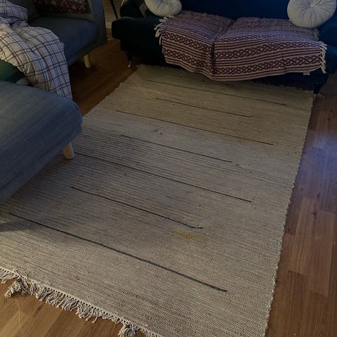 Rusta teppe «Cornelia» selges grunnet flytting. Kjøpt i oktober 2025.