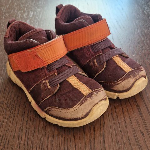 Superfit joggesko for barn, unisex, i størrelse 23. Skoene har blå overdel med rosa detaljer og to borrelåsstropper over vristen for enkel justering. Overdelen er i tekstil og syntetisk materiale med forsterkninger på tå og hæl. Yttersålen er i gummi med mønster for bedre grep. Passer til hverdagsbruk og lek ute og inne.