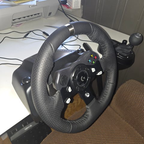Selger med tungt hjerte mitt G923 ratt og div. ettersom jeg har kvittet meg med alt av gaming. Rattet har flere innebygde knapper og kontroller på fronten, samt feste for montering på bord eller stativ. Girspaken har festeklemme for bord som alt annet. Settet kobles til med usb og er egnet for Playstation, PC, Xbox. Har selv brukt på Ps5 for Grand Turismo 7. Brukt i ca 100 timer. Ingen «ikke entusiaster eller ikke-drevne sjoføer har suttet bak rattet her» så det er ingen unødvendig slitasje i utstyret.