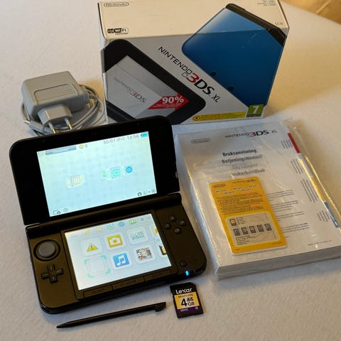 Nintendo 3DS XL : Silver & Black Komplett i eske - CIB