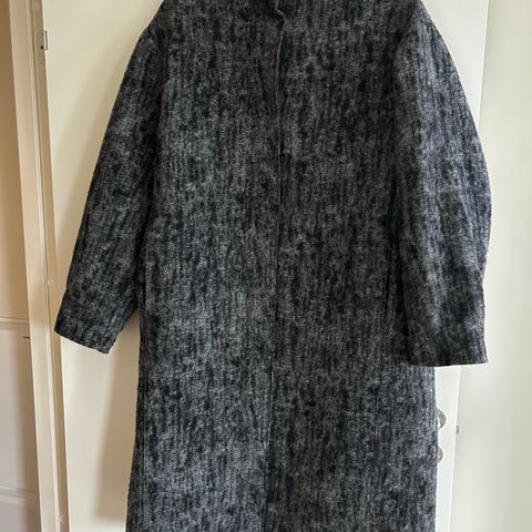 Beige ullkåpe fra Calvin Klein med knapper og knyting. 61% Ull.