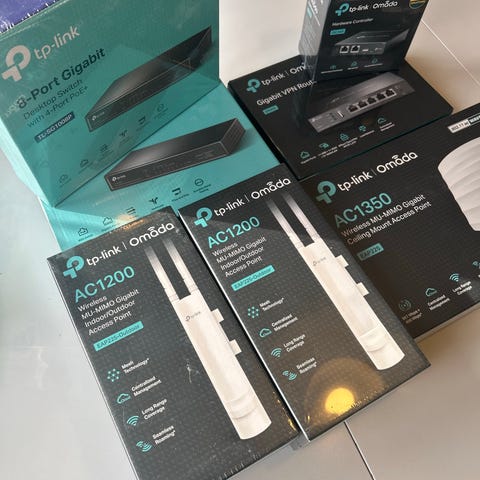 TP-Link TL-SG105E nettverksswitch med 5 gigabit Ethernet-porter.