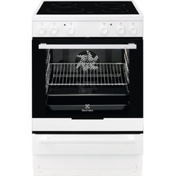 Electrolux komfyr med støpejernsplater i hvit utførelse. Komfyren har fire kokeplater på toppen og stekeovn med glassdør i front. Mekaniske brytere på fronten for regulering av plater og stekeovn. Under ovnsrommet er det oppbevaringsskuff. Egnet som frittstående komfyr på kjøkken, hybel eller hytte der det er behov for enkel platetopp og stekeovn i ett apparat.