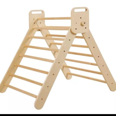 Lufter interessen for å selge vårt klatrestativ: Pikler Triangle - Natur m/klatrebrett fra Wondertree.no, kjøpt i 2022.