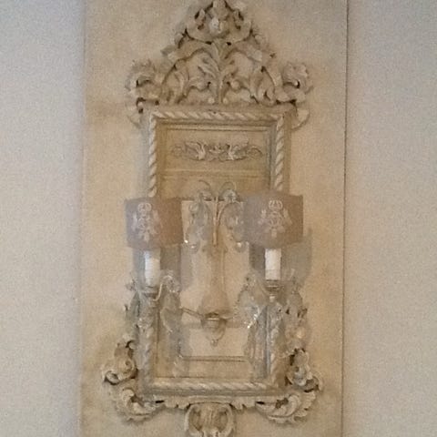 Fransk interiørlampe med utskåret oksehode. Kunsthåndverk fra den franske kvalitetsprodusenten Jean-Pierre Ryckaert "Louisiane les Fers Forgés". For to pærer liten sokkel, maks 60 W