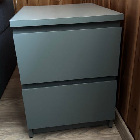 To stykk nattbord EKET fra IKEA selges. Nattbordene er i grå farge, pent brukt. Nattbordene har 2 skuffer som åpnes ved trykk. Veggskinne og skruer følger med.