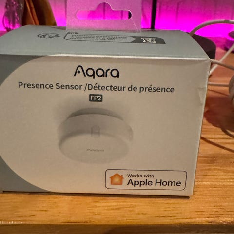 Aqara bevegelsessensor i hvit farge. Sensoren registrerer bevegelse i et rom og kan brukes som del av et smarthussystem for å trigge ulike automatiseringer, som lysstyring eller varslinger. Enheten står på en liten fot som kan plasseres på flate overflater. Passer til innendørs bruk der det er behov for registrering av bevegelse.