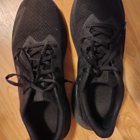 Nike Revolution 6 løpesko i størrelse 40, 5Modellen er i helsvart farge med overdel i pustende mesh-materiale og snøring foran. Skoene er utformet for løping, men kan også brukes til annen trening og hverdagsbruk der lette og komfortable joggesko er ønsket.