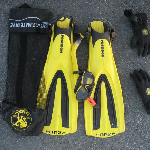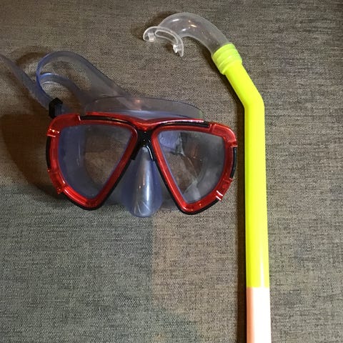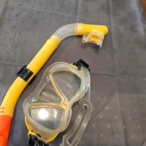 Mares dykkermaske og snorkel i gul farge.