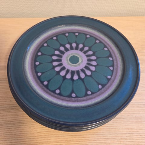 Diameter ca. 24 cm. Tallerknene passer godt både til bruk, samling eller som dekor/veggpynt. Stemplet på undersiden: Figgjo Norway, modell F 555.