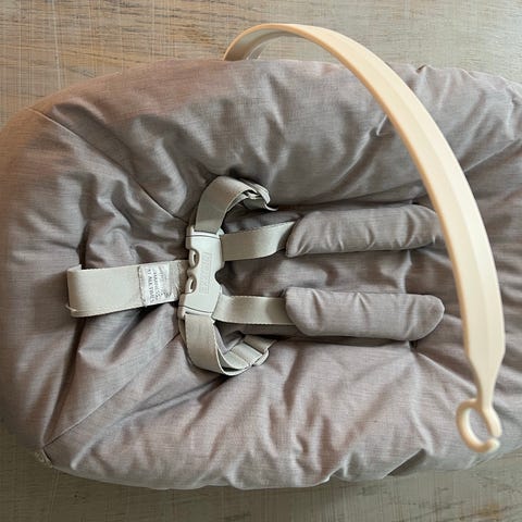 Stokke newborn babysete med integrerte seler. Stolen har et polstret seteinnlegg som gir god støtte og komfort.