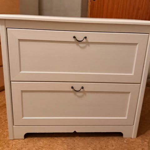 Hvitmalt kurv kommode selges. Noen overfladiske bruksmerker i malingen, men ellers er den er hel og fin.