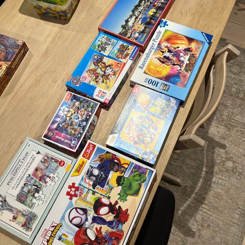 1) Trefl puslespill med dinosaurmotiv, 100 brikker. Klassisk puslespill med fargerikt motiv av dinosaurer. Egnet for barn som liker å legge puslespill og motiver fra natur og dyr.
