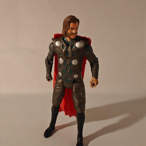 Medicom Mafex Thor actionfigur i 6-tommers skala. Figuren er laget i plast og er basert på Marvel-tegneserieversjonen av Thor. Pakken inneholder utskiftbare hender, ekstra hoder, våpen og effektdeler, samt en gjennomsiktig stativbase med fester for posering. Egner seg som samlefigur eller til utstilling for Marvel- og superheltsamlere.