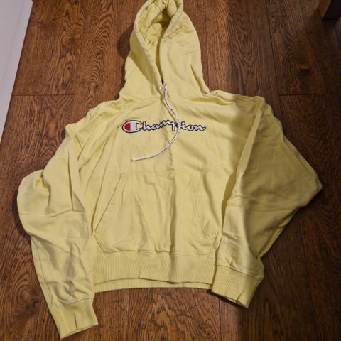 Rød polo hettegenser, med en litt cropped stil. Veldig fin, stor og behagelig hette. Stroppene foran er tatt ut og finner ikke.