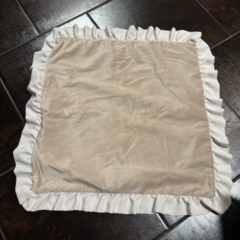 De beige bomullstrekkene: 50 x 50 cm, IKEA (kan brukes på begge sider).