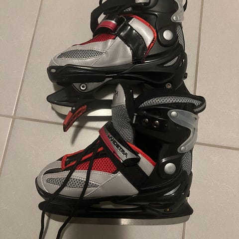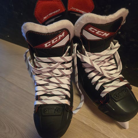 Bauer Twister ishockeyskøyter for barn i størrelse 35. Skøytene har svart og hvit overdel med snøring og polstret pløse for støtte rundt ankelen. Understellet er i plast med stålskinne tilpasset ishockeybruk. Egnet til barn som skal bruke skøytene til ishockey eller generell skøytebruk på isbaner.