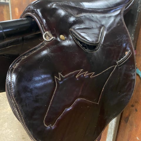 Jeg selger monte / galopp treningssalen min. Den er lite brukt og i ganske god stand, men akkurat der halereimen festes til salen trengs det en liten fiks.