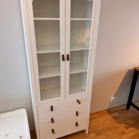 1 stk IKEA vitrineskap med lys. Pris pr stk 1000,-