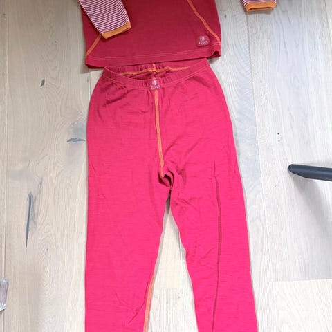 Janus ullundertøy sett for barn, unisex, i størrelse 128 (ca. 8 år). Sett med flere deler i ulike flerfargede nyanser. Plaggene egner seg som innerste lag til hverdagsbruk eller som ullundertøy under yttertøy. Materialet er ullblanding som gir god isolasjon og fukttransport. Passer til både jente og gutt i aktuell størrelse.