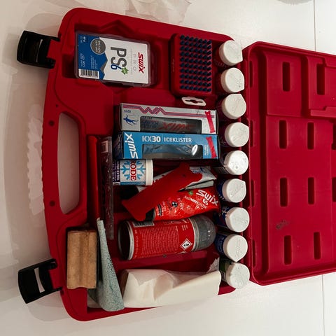Swix Nordic Structure Kit skistruktursett i rød plastkoffert. Settet inneholder flere utskiftbare ruller/valser for strukturering av ski. Innsatsen i kofferten er i skum for sikker oppbevaring av verktøy og tilbehør. Egnet for preparering og strukturering av langrennsski og andre nordiske ski.